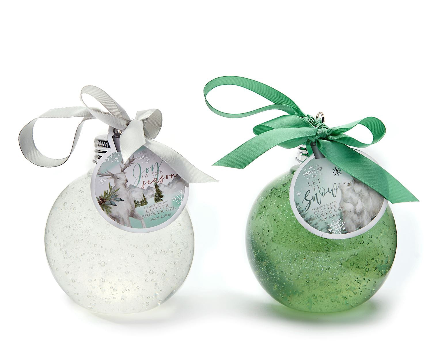 Start or end your day with fresh wintry scents with this Glitter Shower Gel (240 ml) to leave skin feeling moisturized, soft, and clean. This scented glitter shower gel comes in a festive ornament packaging with a sentiment hang tag. Available in 2 assorted scents with sentiments: Cedar Grove/JOY OF THE SEASON, and Forest Walk/LET IT SNOW. FDA certified. Not tested on animals. Shower Gel, PET Bottle, PP Pump. Scent Notes: Cedar Grove: Top Notes - Pepper, Bergamot, Middle Notes - Lavender, Peppercorns, Olive, Pink Pepper, Patchouli, Geranium, Basic Notes - Cedar, Ambergris. Forest Walk: Top Notes - Blood Orange, Middle Notes - Amber, Wood, Basic Notes - Black Pepper, Bitter Orange.