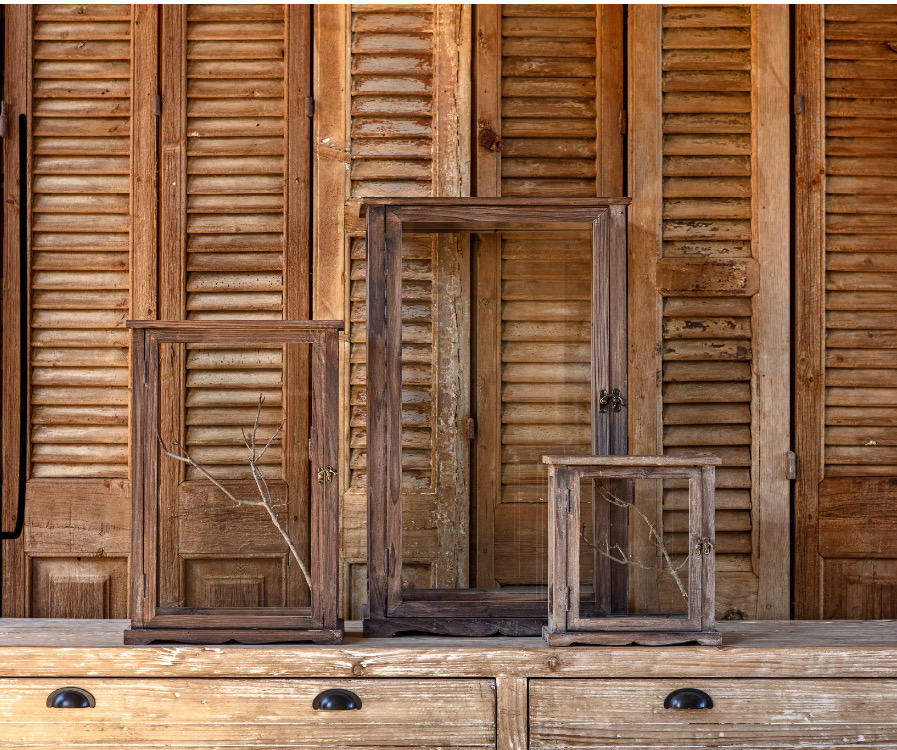 Our merchant's display set of three boxes made of reclaimed wood are great to display dried botanicals or your favorite collectables. L: 17.91" x 11.42" x 28.94", M: 14" x 8.07" x 21.06", S: 11.02" x 5.90" x 12"