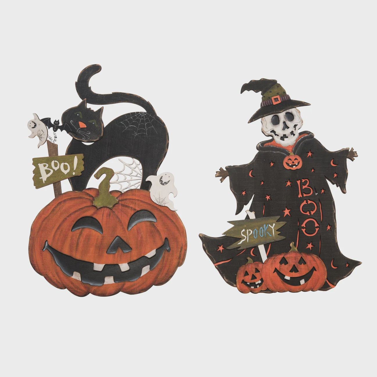 Available in 2 options: Cat with pumpkin or Skeleton with pumpkins