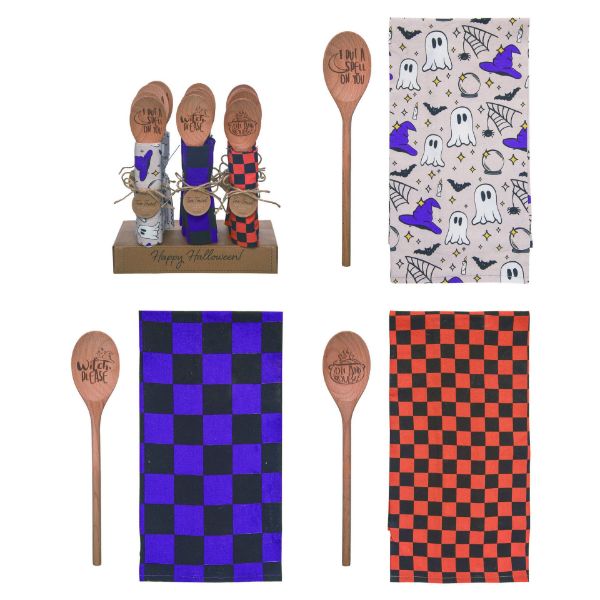 Wood Bewitched Spoon/Tea Towel / Ghost & Witch Hat Tea Towel/'I Put A Spell On You'